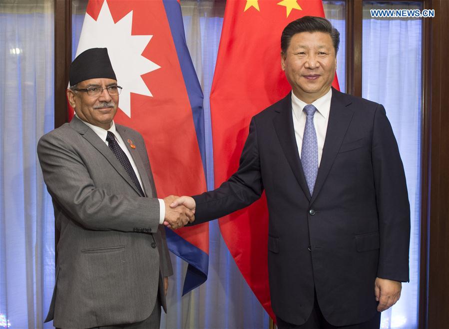 "China and Nepal are close neighbors linked by mountains and rivers," Xi said in a meeting in the western Indian state of Goa with Nepali Prime Minister Pushpa Kamal Dahal on the sidelines of the eighth summit of the emerging-market bloc of BRICS, which groups Brazil, Russia, India, China and South Africa.