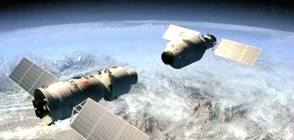 Simulated image of Shenzhou-11 docking with Tiangong-2 space lab