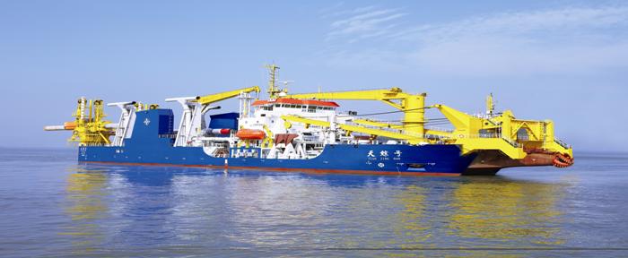 The photo shows "Tian Jing Hao" from CCCC Dredging, Inc, Asia’s first and the world's third most powerful self-propelled cutter suction dredger. [File Photo]