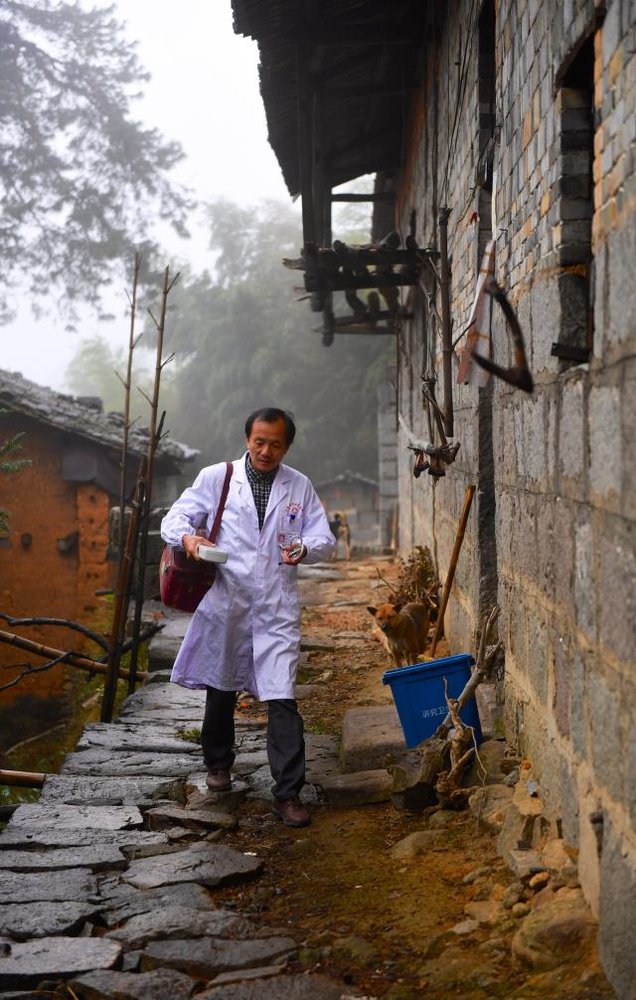 Li Qinru, a 54-year-old village doctor who works in the village of Zaoshi in Jiangxi province, has served in his post for 36 years. In that time, he has worn out over 200 pairs of shoes and walked more than 10,000 mountain roads.