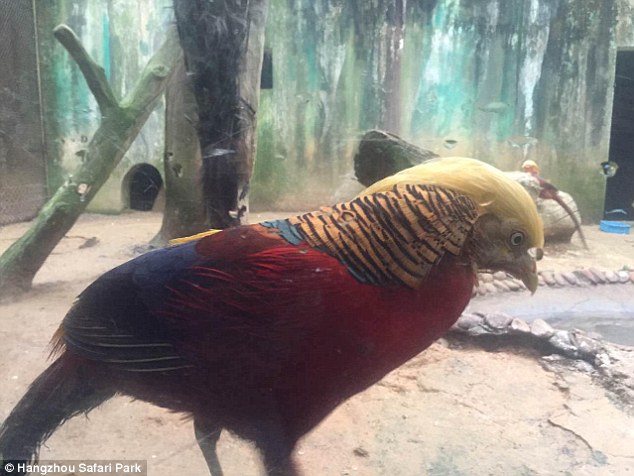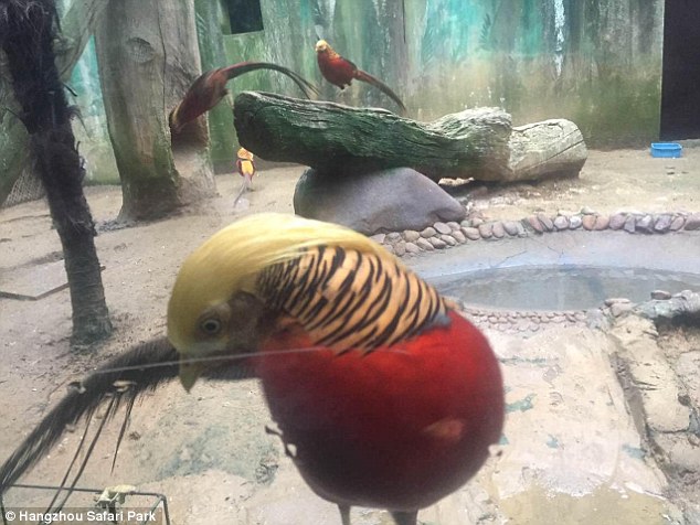 A spokesman from Hangzhou Safari Park told MailOnline: 'A local journalist came to our zoo yesterday and took some pictures of the bird, then wrote about him. We see the pheasant every day. We don't think he is special in anyway, so we are very surprised to see he has become a star.'
