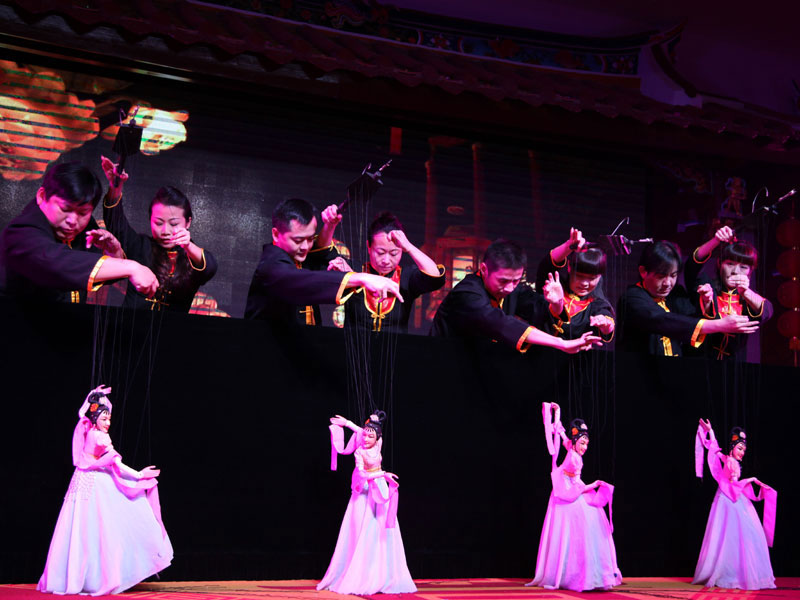 Regarded as one of China's great cultural treasures, Quanzhou marionettes can trace their origins back 2,000 years to the Qin & Han Dynasties. The acrobatic pageantry accompanied by music and singing depicts famous Chinese legends and folktales. Puppeteers must train for many years to master their art. This Quanzhou marionette performance was taking place as part of the 2nd Maritime Silk Road (Fuzhou) International Tourism Festival. [Photo: CRIENGLISH.com/Xu Yang]