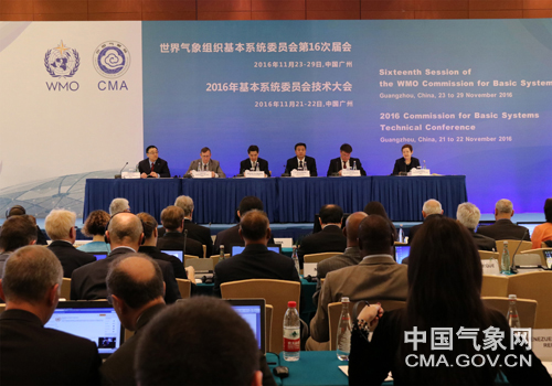 On 23 November, the sixteenth session of the Commission for Basic Systems (CBS), WMO, opened in Guangzhou,Guangdong province in China. Zheng Guoguang, Permanent Representative of WMO and Administrator of China Meteorological Administration (CMA) , Li Chun Sheng, vice-governor of Guangdong Province, Jiao Meiyan, Deputy Administrator of CMA, David Grimes, President of WMO, Petteri Taalas, Secretary-General of WMO, Zhang Wenjian, Assistant Secretary-General of WMO, Fredrick Branski, President of CBS and Vice-President of CBS Susan L. Barrell attended the opening ceremony.
