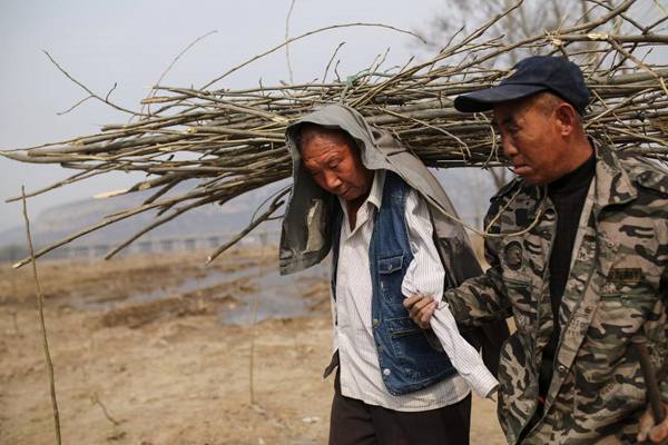 Without money to buy saplings, the two men had to collect cuttings, which required Jia Haixia to scale large trees. Without the use of his eyes, he was guided up the trunks by his armless companion. Back on solid ground, he would create a hole and plant the shoot, after which it became Jia Wenqi's job to water the saplings.