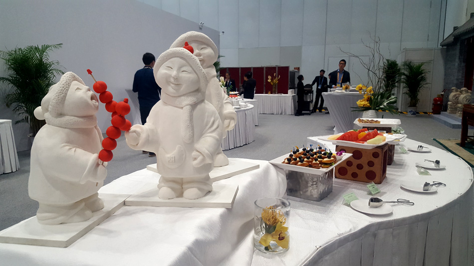 The refreshment area in the media center for the upcoming Belt and Road Forum for International Cooperation is decorated with Chinese elements. The media center offers free meals, fruits, coffee, tea, and desserts for journalists. (People’s Daily Online/Du Mingming)