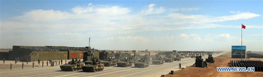 Photo taken on July 30, 2017 shows a formation of infantry combat vehicles during a military parade at Zhurihe training base in north China's Inner Mongolia Autonomous Region. China on Sunday kicked off a grand military parade to mark the 90th founding anniversary of the People's Liberation Army. (Xinhua/Zha Chunming)