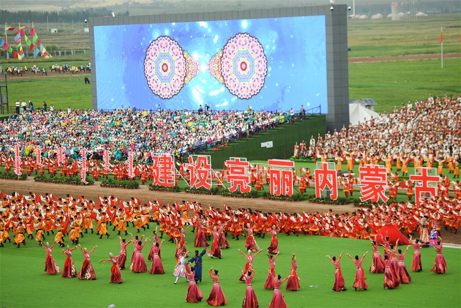 Photo taken on Aug. 8, 2017 shows a view of the celebration marking the 70th anniversary of the Inner Mongolia Autonomous Region in Hohhot, north China's Inner Mongolia Autonomous Region, Aug. 8, 2017.(Xinhua/Chen Yehua)