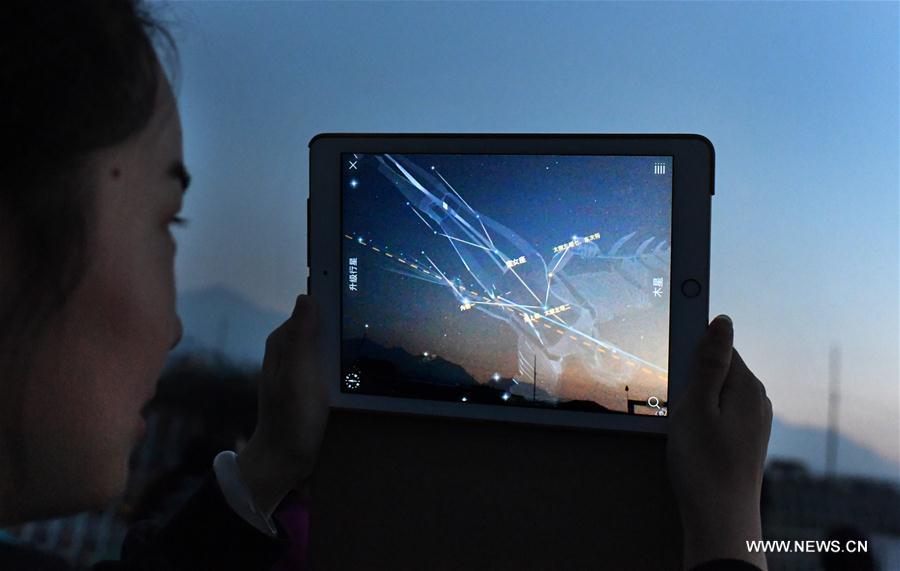 A young observer searches for the constellation during a visit organized by Xinjiang Astronomical Society at Nanshan observation station of Xinjiang Observatory in Urumqi, capital of northwest China's Xinjiang Uygur Autonomous Region, Aug. 13, 2017. Young amateurs gathered to observe the Perseid meteor shower at the observation station which serves as a national science education base. (Xinhua/Wang Fei)