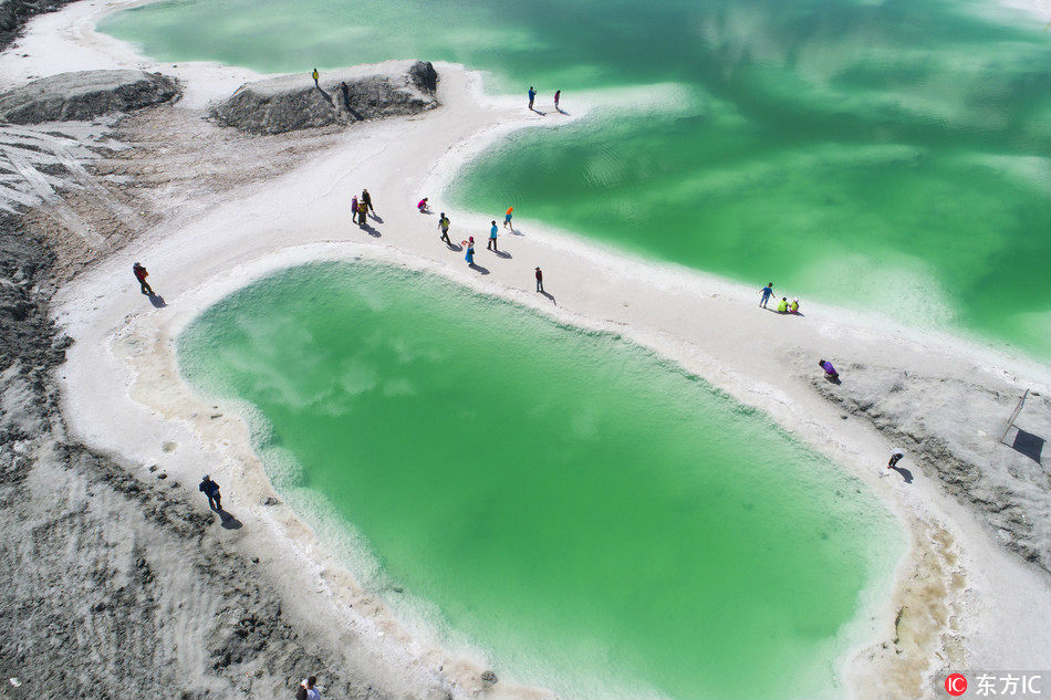 An aerial view of the "Emerald Lake" which is popular with sightseers, 3 August 2017. [Photo: IC]