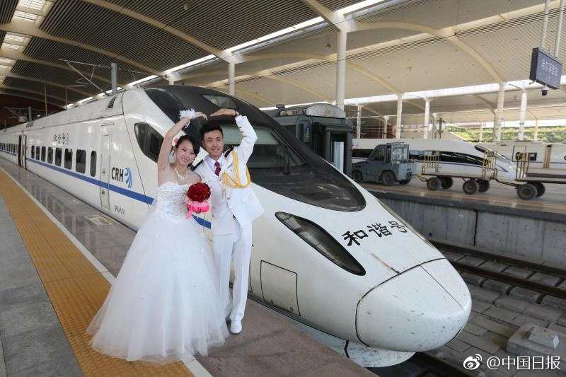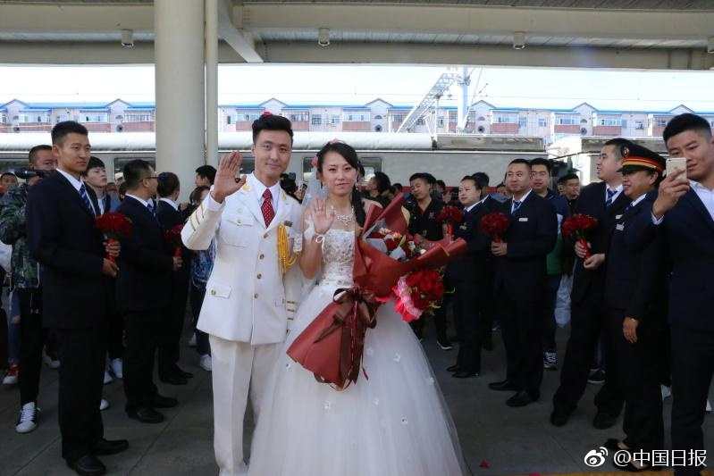 The couple worked for the railways commuting between Harbin and Daqing in Heilongjiang. This time, they used Train No. D6907 as their wedding car, and their relatives and friends were invited to celebrate with the newlyweds.