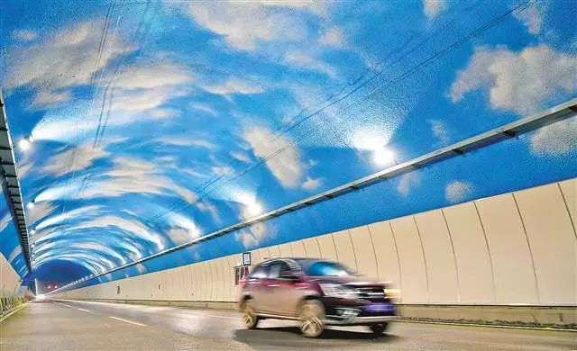 The painted top of the tunnel is a major highlight of the project. The sky and clouds painting emerges every one kilometer in the tunnel, refreshing the drivers with the bright colors.