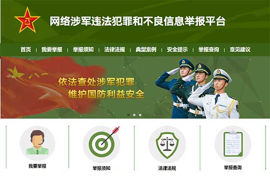 Internet users can report cases of theft or leaks of military secrets, false rumors about the People's Liberation Army or anyone impersonating the military to www.PLA110.cn-the new site launched by the Committee for Political and Legal Affairs of the Central Military Commission.