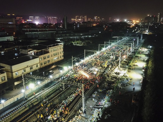 About 1,500 workers finished building a railway for a new train station in less than 9 hours in Longyan City, southeast China’s Fujian Province, showing “China speed” to the world once again.