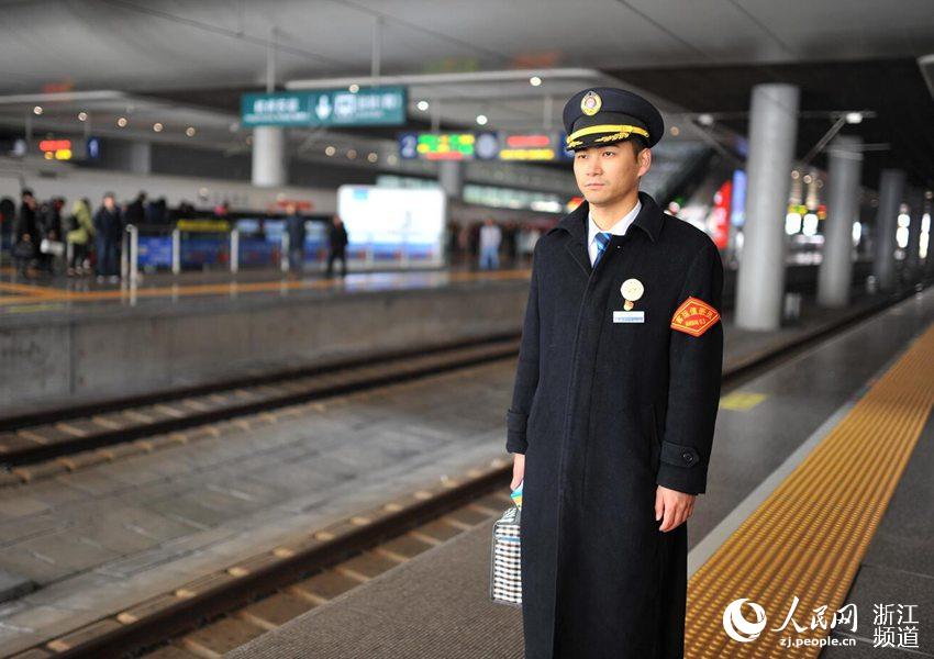 Jin Xin, a railway dispatcher at a train station in eastern China’s city of Hangzhou, stayed with his wife Wang Huan, a high-speed train conductor, for only two minutes after she stopped at the station.