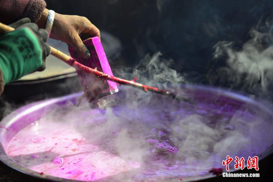 Tibetan handicraftsmen will set up a cauldron before the approaching Tibetan New Year, and color the New Year’s “flowers” in boiling water using dyes from nearby Nepal, Chinanews.com reported on Feb. 9.