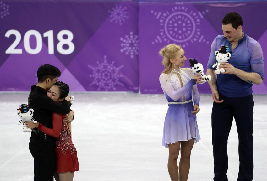 Sui and Han, winner of the 2017 world championship in Finland, finished second with a total of 235.47 points, combined with scores from the short program and free skate in figure skating pairs at the Gangneung Ice Arena on Thursday, delivering China a second silver medal at the 2018 Pyeongchang Winter Olympics.