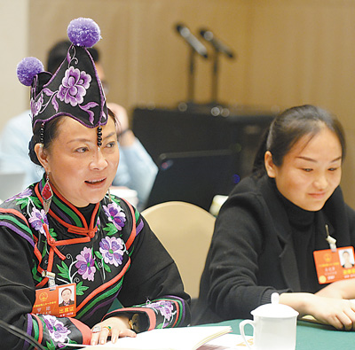 A deputy to the 13th National People's Congress (NPC) from China's Yunnan province speaks during a panel discussion on the draft revision to China's Constitution, March 7, 2018. (Photo: Chen Bin, People’s Daily)