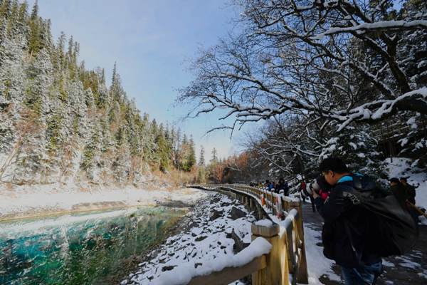 Since some of the scenic spots are still under reconstruction, only part of the spots is opened and the number of tourists is limited to 2,000 each day, according to the administrative bureau of Jiuzhaigou.