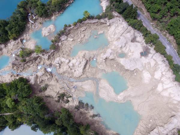 Arial view of the Jiuzhaigou scenic area after the magnitude-7.0 quake hit the area. (Photo from CFP)