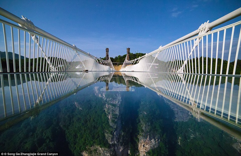 Not for the faint hearted: The world's longest glass-bottomed bridge is loaded with tourists who've come to enjoy the view