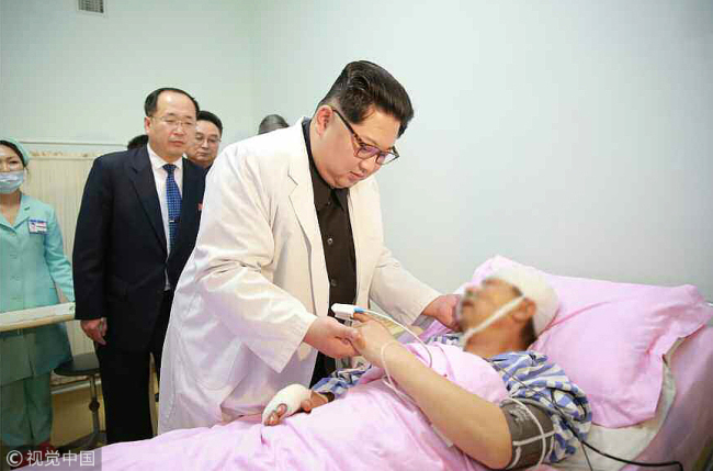 North Korean leader Kim Jong Un visits injured Chinese citizens in hospital on April 24, 2018, after a major road accident. [Photo: VCG]