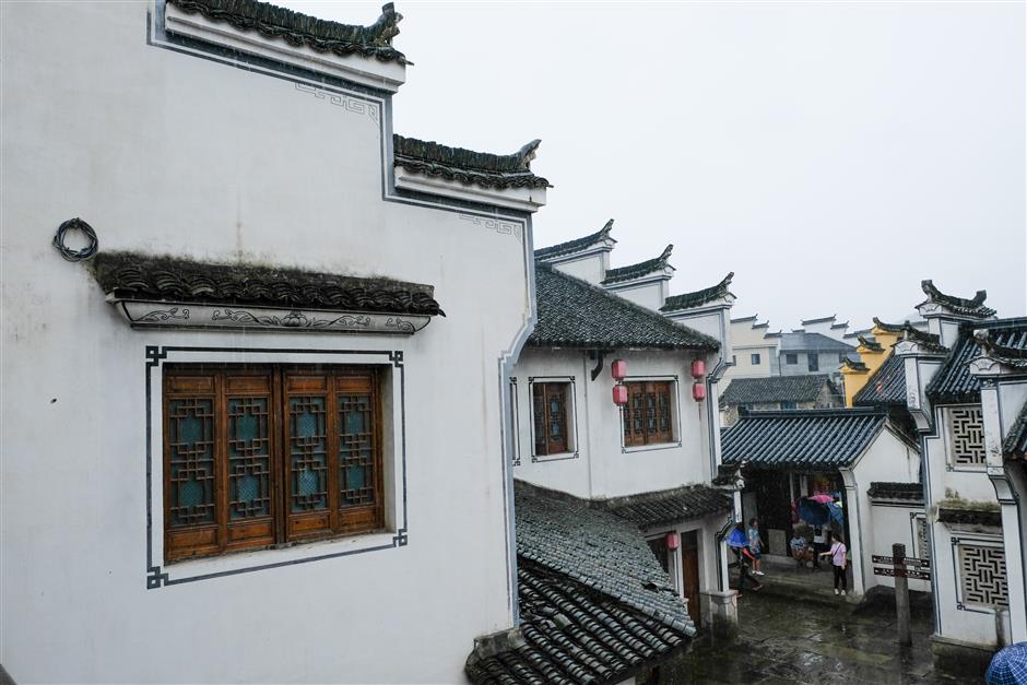Over 100 Hui-style wooden structure buildings, from the Qing Dynasty (1644-1911), still stand there. Words on the buildings’ walls illustrate their functions in the past: Zhenfeng was a cigarette shop, Huiyuan Hall sold traditional Chinese medicine, while Xu Yilong was a grocery store.