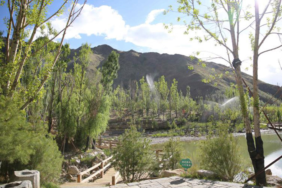 The program of tree planting on mountains around Lhasa started in 2012, and the city has greened its Nanshan mountain and Beishan mountain totaling 4,573 mu now.