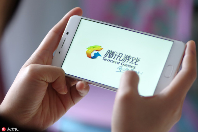 A mobile phone user plays Tencent Games on his smartphone in Ji′nan city, east China′s Shandong province, 9 January 2018.[Photo: IC]