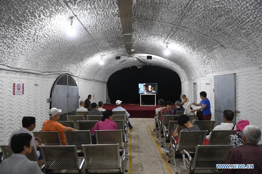 Citizens spend time in an air-raid shelter in Hangzhou, east China's Zhejiang Province, July 17, 2018. The local government opens four air-raid shelters from July 1 to August 31 for citizens to shield from the summer heat. (Xinhua/Huang Zonghzhi)