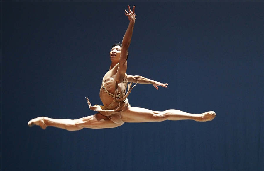 Chinese contestant Shi Yue performs during the Sixth Shanghai International Ballet Competition in Shanghai, East China, Aug 11, 2018. The competition closed here on Saturday. [Photo/Xinhua]