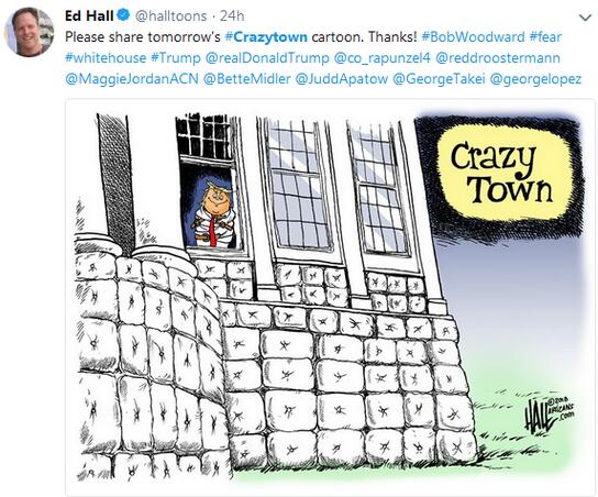 Ed Hall, a political cartoonist, depicted a White House turned madhouse.