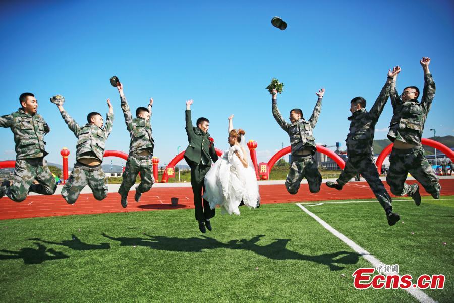 PLA Army soldiers take part in a group wedding ceremony on Sept. 27, 2018. Forty-eight pairs of couples had their wedding ceremony delayed due to a military mission. (Photo: China News Service/Liu Yishan)