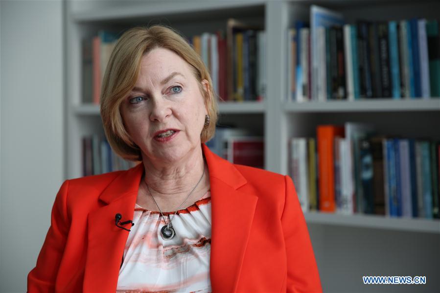 Mary Lovely, an American professor of economics and an expert on trade with China, speaks during an interview with Xinhua in Washington D.C., the United States, on Sept. 26, 2018. (Xinhua/Hu Yousong)