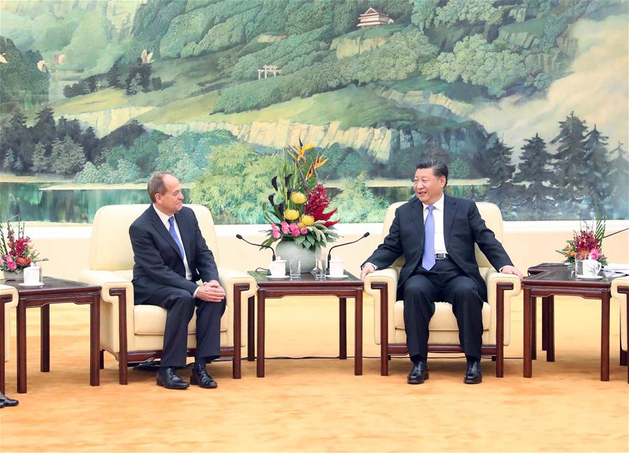 BEIJING, Oct. 16 (Xinhua) -- Chinese President Xi Jinping on Tuesday reiterated China's commitment to free trade and economic globalization while meeting with Stephen Perry, chairman of Britain's 48 Group Club in Beijing.