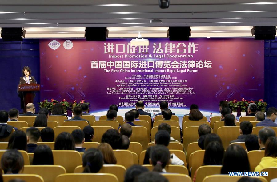 The first China International Import Expo Legal Forum with the theme of “Import Promotion & Legal Cooperation”is held in Shanghai, east China, Nov. 6, 2018. (Xinhua/Liu Ying)
