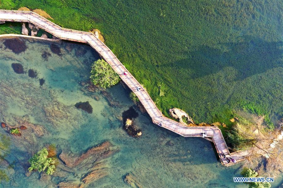 Tourists have fun at scenic spot in Nanlong Town, NW China