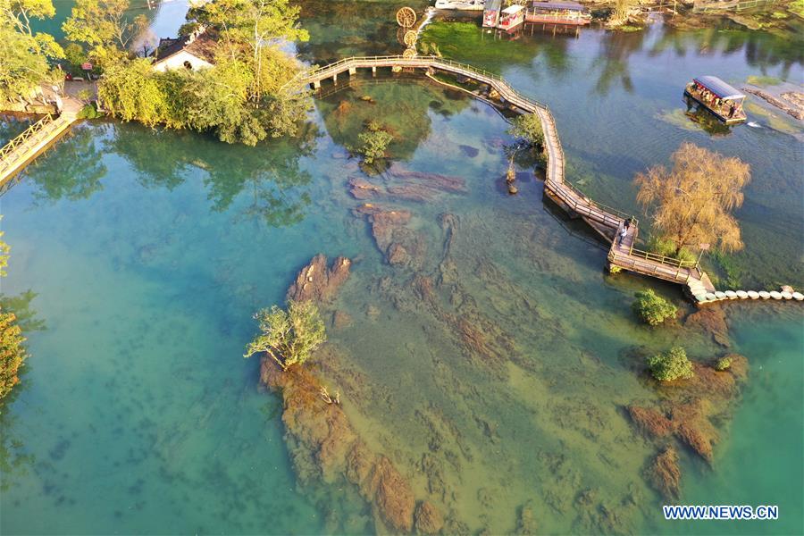 Aerial photo taken on Nov. 27, 2018 shows the scenery of E'quan Village under Xinjing Town in Jingxi, south China's Guangxi Zhuang Autonomous Region. (Xinhua/Zhou Hua)