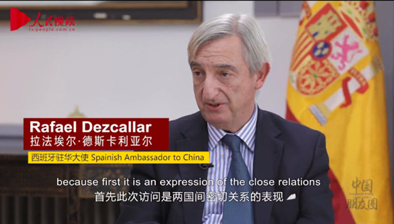 A screenshot of Spanish Ambassador to China Rafael Dezcallar, who is giving an interview to People’s Daily.