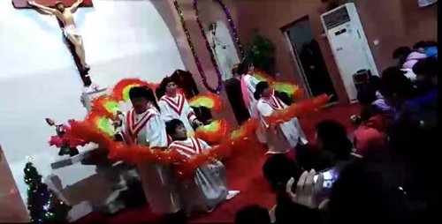 8 Catholic churchgoers rehearse a "fan dance" program for the Christmas celebration at a church in Linxi county, administrated by Xingtai, North China's Hebei Province on Monday. Photo: screenshot of a video sent to the Global Times by a local Catholic