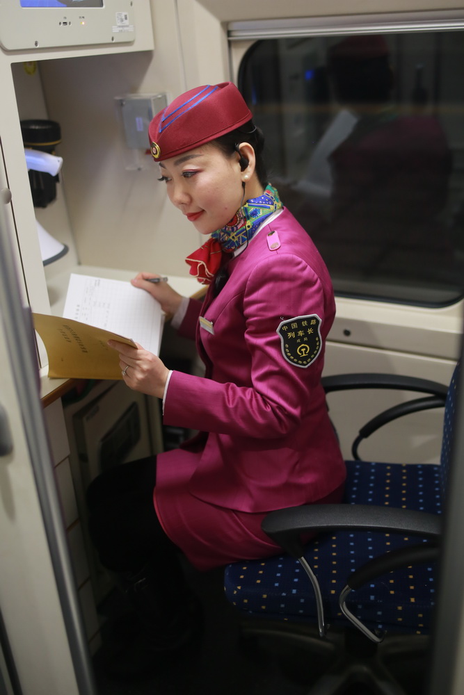 A day before the Spring Festival travel rush of a female bullet train chief conductor (8)