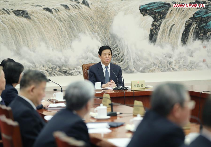Li Zhanshu, chairman of the National People's Congress (NPC) Standing Committee, presides over a NPC Standing Committee chairpersons' meeting at the Great Hall of the People in Beijing, capital of China, Jan. 16, 2019. (Xinhua/Liu Weibing)
