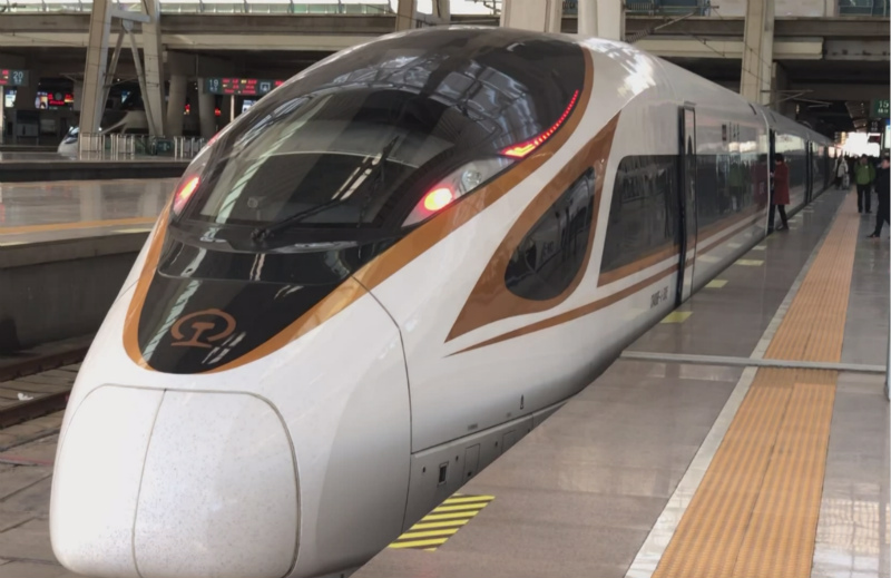 This year, 60 percent of the trains departing from Beijingnan Railway Station are Fuxing bullet trains. To see how quick and easy the process of getting home now is, I head down to Beijingnan Railway Station to hop on a 16-car Fuxing train, with a passenger capacity of 1,193 people and a maximum speed of 350 km/h.