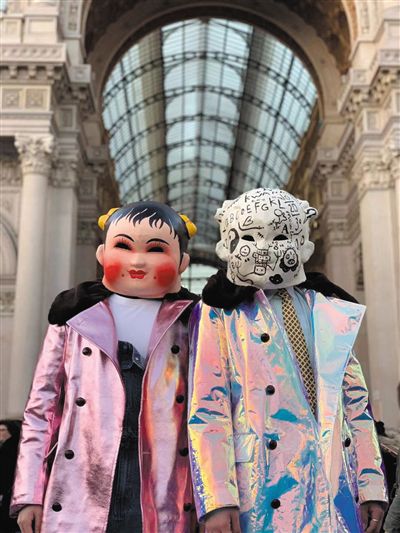 International models wearing Chinese-style outfits and Chinese folk cultural masks strutted their stuff on Piazza Castello, Milan, on Feb. 19, 2019, as part of Milan Fashion Week, promoting Chinese culture to the world.