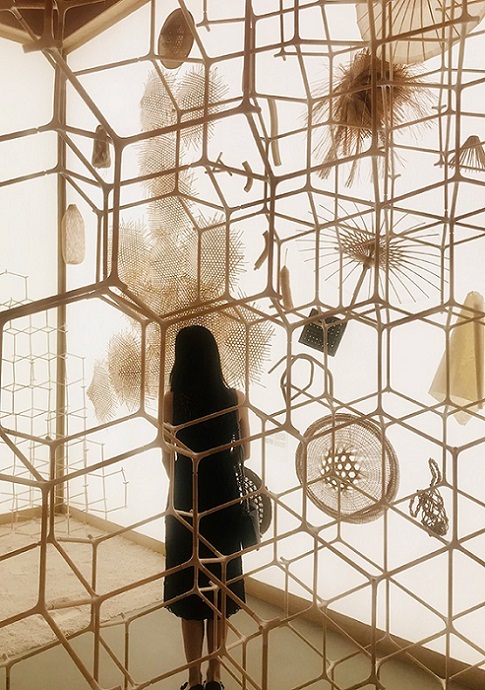 Artist Yang Mingjie uses bamboo and plastics to create an installation in reminiscence of classic Chinese gardens. [Photo by Lin Qi/China Daily]