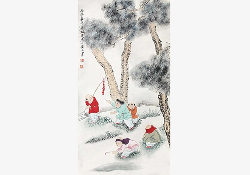 The Qing Dynasty artist Huang Shanshou (1855-1919) is a popular painter at auctions in China. He devoted all his life to creating art, leaving several Chinese painting masterpieces. His work is gorgeous but elegant. The picture above shows five children playing with firecrackers during the Chinese New Year.