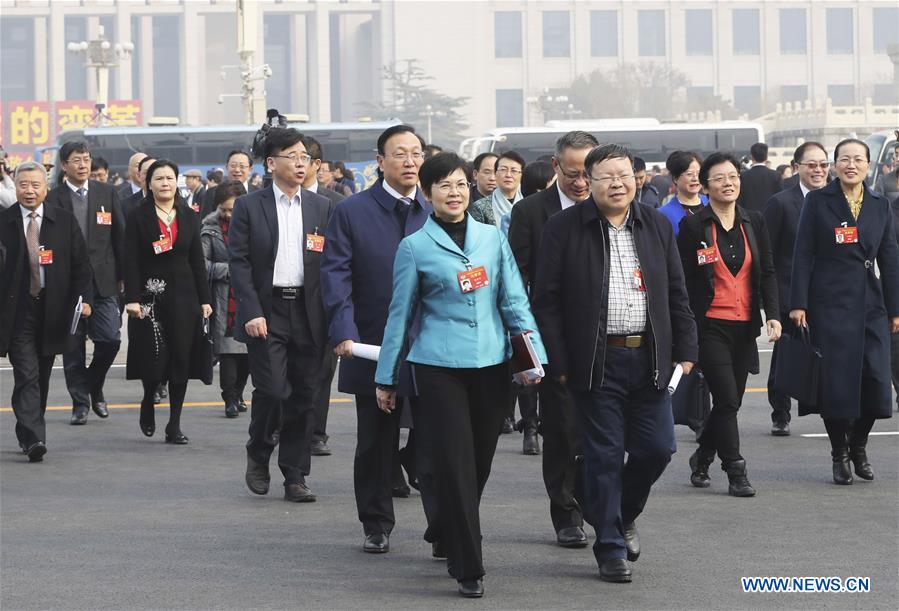 Members of the 13th National Committee of the Chinese People's Political Consultative Conference (CPPCC) walk towards the Great Hall of the People for the second session of the 13th CPPCC National Committee in Beijing, capital of China, March 3, 2019. (Xinhua/Yin Gang)