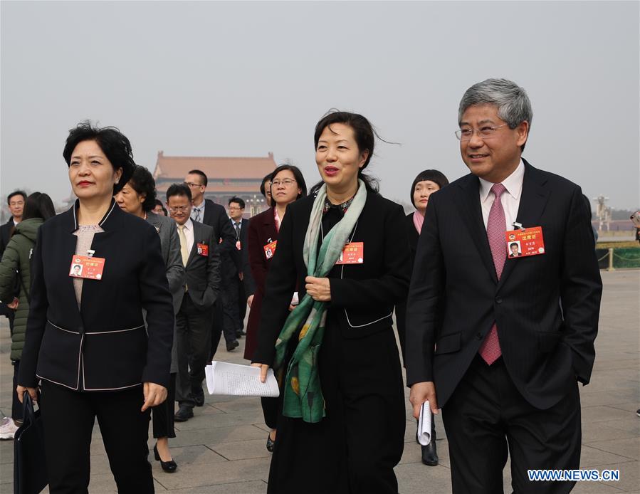 Members of the 13th National Committee of the Chinese People's Political Consultative Conference (CPPCC) walk towards the Great Hall of the People for the second session of the 13th CPPCC National Committee in Beijing, capital of China, March 3, 2019. (Xinhua/Jin Liwang)