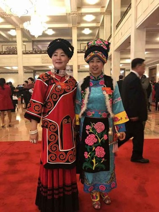 Two NPC deputies from ethnic minority groups arrive at the Great Hall of the People to attend the opening ceremony of the second session of 13th NPC. Photo: Cao Siqi/GT