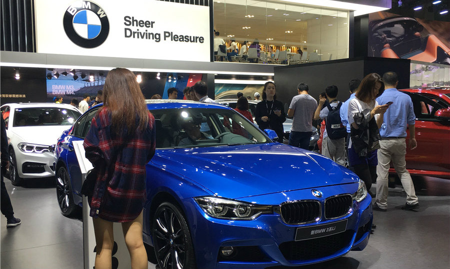 A BMW 3 Series Li is displayed at the Guangzhou auto show in 2018. [Photo by Li Fusheng/China Daily]