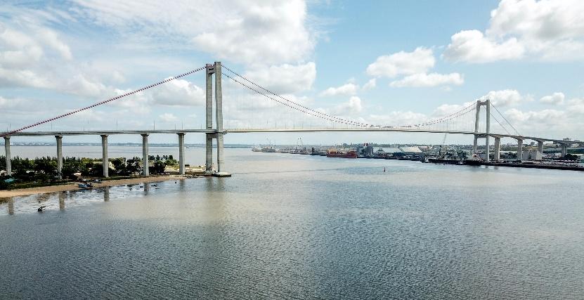 Aerial photo taken on April 8, 2019 shows the Maputo Bay Bridge in Maputo, Mozambique. The bridge is part of the Maputo Bridge and Link Roads project built by the China Road and Bridge Corporation, with Chinese standards and financing support. (Xinhua/Zhang Yu)